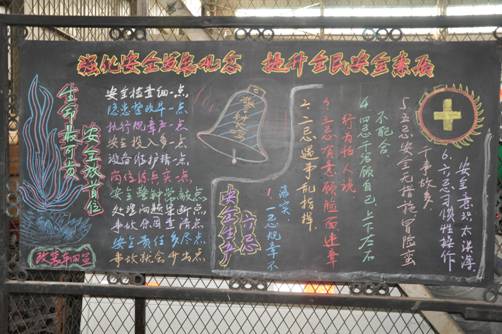 各车间以“强化安全生产发展观念,提升全民安全素质”为主题创作漫画共计35幅,创作黑板报共计9板,经过活动领导小组评比,漫画奖项:金柱贸易公司下料车间(第一名)、油漆车间(第二名)、大厢车间(第三名)。黑板报奖项:液压车间(第一名)、改装车间(第二名)、油漆车间(第三名)。